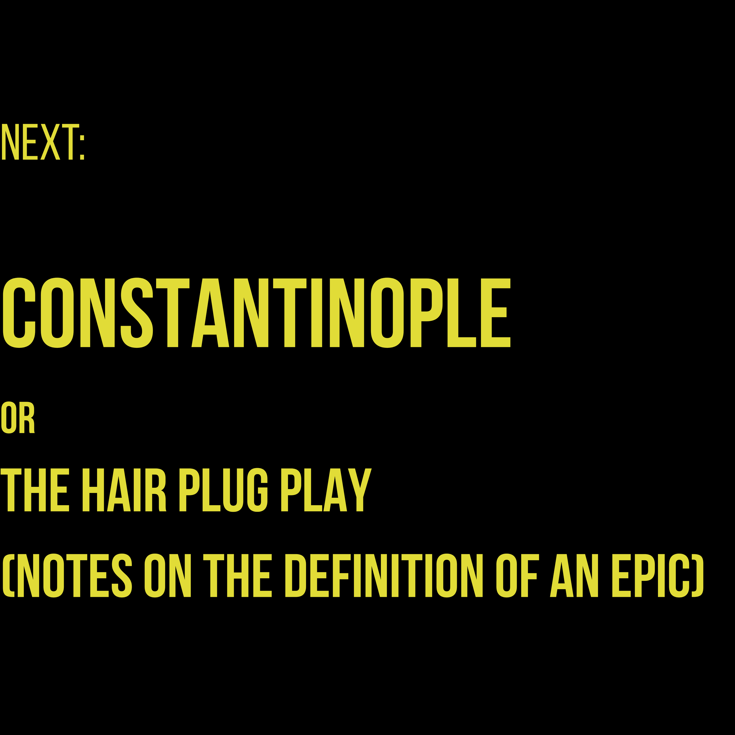 four friends go on a pilgrimage to Turkey to get hair transplants. The play wrestles with virility, male loneliness, and the hairline as the final frontier.